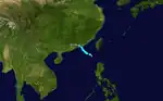 Early on July 14, the JMA upgraded a low-pressure area in the South China Sea to a tropical depression after the system began to organize.[46] Late the same day, the JMA began issuing advisories on the depression, and forecast it to develop into a tropical storm within the next 24 hours.[47] The system intensified into a tropical storm, and was then named Talas. A few days later, Talas intensified further to become a severe tropical storm.