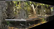 Modernisation began in 2002 through to 2013, all terrariums were replaced by biotope terrariums. Biotope terrariums are replicas of the primary animals' natural habitat, including plants, fish and animals. Tropicarium Kolmarden now has over 20 biotope terrariums containing a large variety of reptiles, amphibians and mammals.[2]