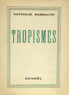 Tropisms (French: Tropismes [tʁɔ.pism]) is an experimental novel by Nathalie Sarraute, first published in 1939. It is considered a forerunner of the Nouveau Roman.[1][2] Jean Genet, Marguerite Duras and Jean-Paul Sartre all described it as a masterpiece.[3][4][5]
