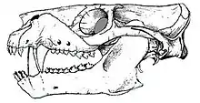Trucidocynodon is an extinct genus of ecteniniid cynodonts from Upper Triassic of Brazil.[1] It contains a single species, Trucidocynodon riograndensis. Fossils of Trucidocynodon were discovered in Santa Maria Formation outcrops in Paleorrota geopark Agudo. T. riograndensis was similar to Ecteninion lunensis from the Upper Triassic Ischigualasto formation of Argentina, but differed in several respects, including its larger size. It is known from a nearly complete holotype skeleton as well as a referred skull. The holotype skeleton had an estimated length of 1.2 meters (4 feet), while the referred skull was 17% larger than that of the holotype. Trucidocynodon is considered one of the largest known carnivorous cynodonts from the Triassic, as well as one of the largest probainognathians in the entire Mesozoic.[1][2]