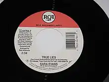 "True Lies" is a song written by Al Anderson, Sara Evans and Sharon Rice, and recorded by Evans as her debut single. Released in 1997, "True Lies" became a minor hit on the Billboard country chart and was later included on Evans' debut studio album, Three Chords and the Truth. The song received positive reviews from critics.