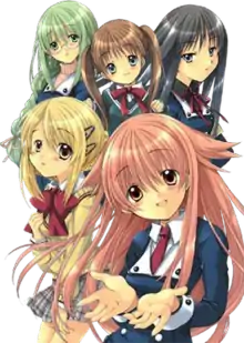Other characters include Hikari Ogasawara (小笠原 光里, Ogasawara Hikari, Voiced by: Ami Koshimizu), a friend of Yuzuko's, and Mako Momose (百瀬 真子, Momose Mako, Voiced by: Akeno Watanabe), Io's fellow broadcasting club member who strives to be a comedian.[9] The two often appears together as supporting characters, but in addition to Asumi Akiyama, the two are also side-heroines. Keigo Sakuragawa (桜川 圭悟, Sakuragawa Keigo, Voiced by: Hideki Tasaka) is Io's stubborn elder brother.[10] Despite usually arguing with his sister over her ideals, he is actually quite fond of her and sometimes gets overprotective, to her dismay. Riku Morioka (森岡 陸, Morioka Riku, Voiced by: Masahito Yabe) is a friend of Mizuno. He is often depicted as a comic relief character, but also accompanies the protagonist on events like the school's festival. Gion Inoue (井上 祇園, Inoue Gion, Voiced by: Yukari Fukui) is a girl whose childish appearance resembles a grade school student.[11] She constantly mixes in onomatopoeia phrases in her speeches.[11]