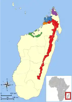 | Combined distribution of Eulemur,excluding introductions[3] | |