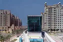 The Al Ittihad Park (formerly Trump Tower) monorail station on the Palm Jumeirah, located at the proposed site of the skyscraper
