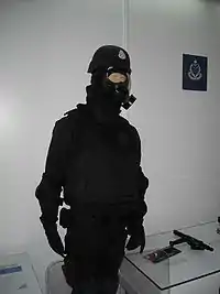 The Prisons Department are required to deploy such a unit because many high-profile criminals and terrorists are detained, including those under the Internal Security Act (ISA). This unit liaises with other agencies, including the Pasukan Gerakan Khas and Royal Malaysian Navy's PASKAL which are also involved in national security.[1] The TTC duties include transport of high risk inmates, extracting uncooperative prisoners from their cells, daily full cell searches and high-profile security, barricaded persons, riots, mass arrest, high risk/high-profile transport and hostages situations, as well as crowd control.