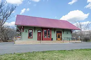 Truxton Depot, also known as Lehigh Valley Depot, is a historic railway depot located at Truxton in Cortland County, New York. It was built about 1872 by the Lehigh Valley Railroad. It is a small rectangular, one story structure, 50 feet long and 30 feet wide. The building ceased use as a train station in 1967 and was then used by Agway as a warehouse. In 1991, it was sold to the town of Truxton for $1.00.[2] It now serves as the Truxton Town Hall. [3]