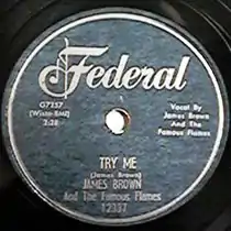 "Try Me", titled "Try Me (I Need You)" in its original release, is a song recorded by James Brown and The Famous Flames in 1958. It was a #1 R&B hit and charted #48 Pop - the group's first appearance on the Billboard Hot 100.[1] It was Brown and the Flames' second charting single, ending a two-year dry spell after the success of "Please, Please, Please".