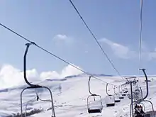 Tsaghkadzor ski resort is located just above the town, at a height of 1,750 meters above sea level. It was fully modernized during the first decade of the 21st century. All of the cableway lifts are manufactured and operated by the Leitner Group. The current structure replaced the old soviet-era lifts, mostly following their path. There were initially 3 consecutive lifts stretching from the foot of the mountain at a height of 1969 meters above sea level, up till the mountain peak at 2,819 meters high, with the first and second lifts ending at 2,234 meters and 2,465 meters high, respectively. In 2006 a fourth lift was added, stretching from the end of the first stage towards an opposite hilltop, thus adding two trails, both leading down to the foot of the slopes.[9] Apart from the lifts the resort offers ski and snowboard rental as well as skiing instructors. The skiing season in Tsaghkadzor normally starts in mid-December and stretches well into March with the top slopes often fit for skiing in April.