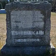 On November 29, 1847, Cayuse Indians massacred the members of the Whitman Mission in Walla Walla. Cushing Eells and Elkanah Walker were supposed to be at the Whitman Mission during the time of the massacre, but Elkanah Walker took ill, and Cushing Eells did not want to leave the families without support.[7] As members of the Oregon Volunteers chased the Indians, it brought them closer to the Tshimakain Mission. One of the Indians involved in the massacre had family at Fool's Prairie, now Chewelah, to the north of the Tshimakain Mission. The Chief Factor John Lee Lewes of Hudson Bay Company Fort Colvile offered to house the missionaries up at the fort for their safety. At first they delayed going to the fort as the Spokane People wanted them there and would provide support. As the chase of the Cayuse Indians involved in the massacre stretched out, they finally sought the safety of the fort.[8]