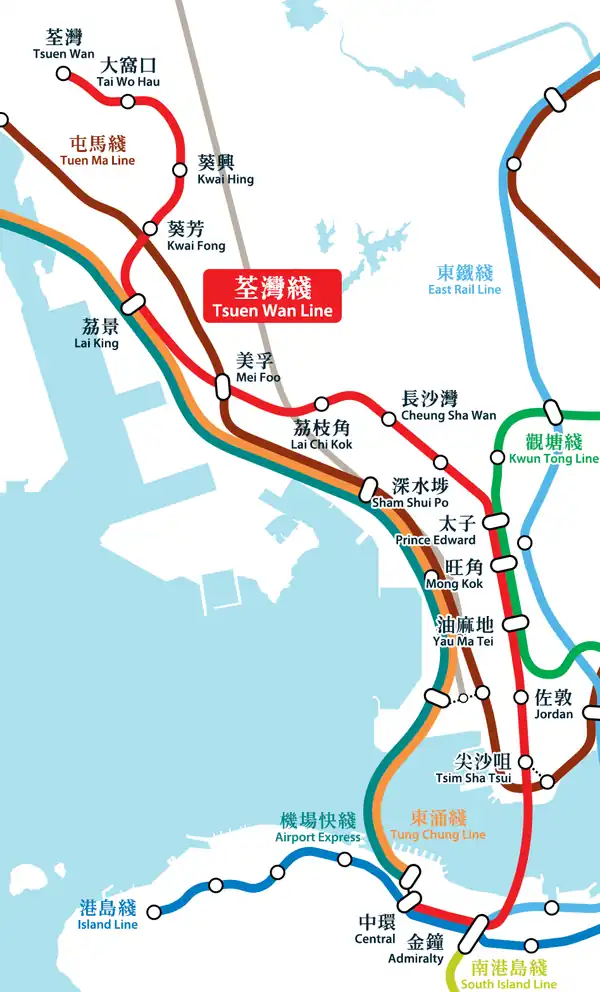 | Tsuen Wan line 荃灣綫 | |||||||||||||||||||||||||||||||||||||||||||||||||||||||||||||||||||||||||||||||||||||||||||||||||||||||||||||||||||||||||||||||||||||||||||||||||||||||||||||||||||||||||||||||||||||||||||||||||||||||||||||||||||||||||||||||||||||||||||||||||||||||||||||||||||||||||
