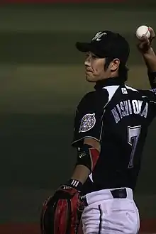 ![]() Nishioka with the Chiba Lotte Marines in 2010 | ||||||||||||||