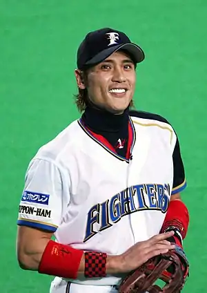 Born in Tsushima, Nagasaki Prefecture, Japan and raised in Minami-ku, Fukuoka, he played for the Hanshin Tigers in Japan from 1990 until 2000, then for Major League Baseball's New York Mets and San Francisco Giants. In 2002, he became the first Japan-born player to play in the World Series, where he went 1 for 6 with three strikeouts. He ended his three-year stint in American baseball by being demoted to AAA after hitting .193 for the first half of the 2003 season. He returned to Japan and played for the Hokkaido Nippon Ham Fighters from 2004 until 2006. He is known for his flamboyance, colorful wristbands, dyed hair, and a unique hop as he catches the ball. His uniqueness has endeared him to baseball fans and has made him one of the most popular players in the Japanese leagues despite not being in the echelon of elite active players. In fact, his popularity was what kept him off the bench during his stint with the Tigers when manager Katsuya Nomura tried to turn him into a pitcher on the rotation rather than risk his team with his mediocre play.[1]
