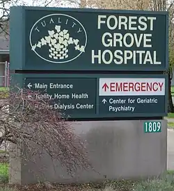 Tuality Forest Grove Hospital is licensed as a hospital in Forest Grove, Oregon, United States, but does not operate as an inpatient care service. Built in 1963, the facility had 48 beds and employed approximately 100 healthcare professionals.[1]