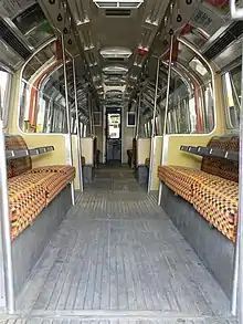 London Underground trains come in two sizes, larger sub-surface trains and smaller deep-tube trains.[1] Since the early 1960s all passenger trains have been electric multiple units (EMUs) with sliding doors.[2] A train last ran with a guard in 2000.[3] All lines use fixed-length trains with between six and eight cars, except for the Waterloo & City line, which uses four cars.[4] New trains, which are designed for maximum number of standing passengers and for speed of access to the cars, have regenerative braking and public address systems.[5]