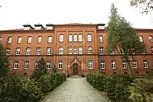 Under the First Partition of Poland in 1772, Tuchola, renamed Tuchel, was annexed by the Kingdom of Prussia. On May 17, 1781, the Church of St. Bartholomew and vast parts of the town burned down. Around 1785 there existed 148 households inside Tuchel, and the town owned both the village of Kiełpin (then Kelpin) and the small estate Wymysłowo (then named Wymislawe).[4] During the reign of Prussian King Frederick the Great (1740-1786), the town was built up again, and German Protestants obtained a church in the town hall.[5] In the early 19th century, during the Napoleonic Wars and Polish national liberation fights, French, Polish, Prussian and Russian troops were stationed in the town. With the unification of Germany under Prussian hegemony in 1871, it became part of the German Empire. The Polish population was subject to Germanisation policies, which intensified after 1871, however, various Polish organizations were founded in Tuchola in the late 19th and early 20th centuries.[6] During World War I, a prisoner-of-war camp was established near the town, mostly for Romanians and Russians, but also Poles, Italians, French and British.
