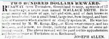 - "Twenty Dollars Reward". Richmond Enquirer. 1836-01-23. p. 1. Retrieved 2021-05-05.