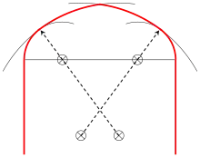 A variant of the four-centered arch, typically referred to as the "keel arch", became especially characteristic of Fatimid architecture.[3][6][7] It is distinguished from other four-centered arches by having most of the arch's normal radius appear more straight than curved.[3] It became standard for a while in Egyptian Islamic architecture in the 12th century.[3] Blind keel arch niches appeared frequently as a motif of decorated façades in late Fatimid, Ayyubid, and early Mamluk architecture in Cairo.[3][8][4]: 46, 285