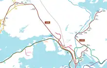 Like all MTR lines, the Tuen Ma line is grade-separated throughout its entire length. It is mainly underground in the urban sections of Kowloon and Tsuen Wan, and at-grade or elevated in the rest of the New Territories. Most of the original Ma On Shan line (between Tai Wai and Wu Kai Sha) is built on a viaduct on land which had been reserved for the purpose of a railway from the outset of the development of Ma On Shan New Town.[8] However, the section between Shek Mun and Tai Shui Hang is at ground level, located between the carriageways of Tate's Cairn Highway, along with the section between Tai Wai to Hin Keng, which is also partially on an embankment and parallel to the East Rail line. The line then goes underground through Diamond Hill station and Kowloon City before emerging into open air near Hung Hom station at ground level. The line then heads southwest into a tunnel after the station and descending underground through East Tsim Sha Tsui and Austin stations (the former having originally being served by the East Rail line, and the track heading northwards through the latter), before returning to ground level (though still fully covered) at Nam Cheong station. The track then runs northwest through a sealed box tunnel just to the north to and under the West Kowloon Highway through Lai Chi Kok Park into Mei Foo station, which has a ground-level/underground hybrid design. Bored tunnels traverse densely populated Kwai Chung and under the Tsuen Wan line towards Tsuen Wan West station on reclaimed land, after which a 5.5 km (3.4 mi) bored rock tunnel, the Tai Lam Tunnel, takes trains through Tai Lam Country Park.