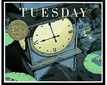 Tuesday, written and illustrated by David Wiesner, is a 1991 wordless picture book published by Clarion Books. Tuesday received the 1992 Caldecott Medal for illustrations and was Wiesner's first of three Caldecott Medals that he has won during his career.[1] Wiesner subsequently won the Caldecott Medal in 2002 for The Three Pigs, and the 2007 medal for Flotsam.[2]