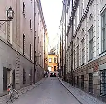 Tullgränd (Swedish: "Customs Alley") is an alley in Gamla stan, the old town of Stockholm, Sweden, connecting Skeppsbron to Österlånggatan. It forms a parallel street to Packhusgränd and Norra Bankogränd.