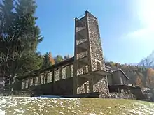 In 1946, Tullio Vinay left his pastoral position in Florence, and the following year he founded the Ecumenical Church Center at Prali, in Piedmont.[2][3] Indeed, after the World War II, the Waldensian Church wanted to contribute actively to the necessary work of reconciliation. In 1947, under the leadership of Pastor Tullio Vinay, some young Italian Protestants began the construction project of the Agapè Center. With the support of the World Council of Churches, they were soon joined by young people from different countries who, just a few years before, were fighting each other in a merciless war: Americans, English, Germans, French, etc. Agapè was a place of meeting, living and working together for young people from different countries but also different religions, including non-believers, in a confrontation where everyone would have to give up their claim of owning the truth, a concept well ahead of its time in 1947.[4] The purpose of this center was thus summarized by its founder: "Agape is a place where people meet and spend a brief period of living together in search of brotherly love. To the question of when the idea of founding this center was born, Tullio Vinay replied: "When we discovered, with astonishment and surprise, that God loves us". The architect of the building was Leonardo Ricci, a renowned architect and also a friend of Tullio Vinay.