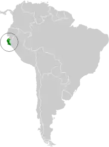 The Tumbes hummingbird is found in southwestern Ecuador's El Oro and Loja provinces and into northwestern Peru as far south as Lambayeque Department. It inhabits arid scrublands and the edges of deciduous forest in the Tumbes ecoregion. In elevation it ranges from sea level to 1,000 m (3,300 ft) in Ecuador and 1,275 m (4,200 ft) in Peru.[9]