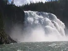Tumbler Ridge's location among the Rocky Mountains has allowed for the development of numerous trail systems for motorized and non-motorized recreation. The trails and open areas span numerous mountains. Kinuseo Falls along the Murray River in the Monkman Provincial Park is the most popular destination for visitors to Tumbler Ridge.[66] Two other provincial parks are just outside the municipal boundaries: Bearhole Lake Provincial Park and Gwillim Lake Provincial Park.