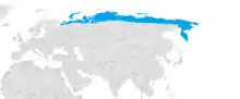 The tundra wolf (Canis lupus albus), also known as the Turukhan wolf,[3] is a subspecies of grey wolf native to Eurasia's tundra and forest-tundra zones from Finland to the Kamchatka Peninsula.[3] It was first described in 1792 by Robert Kerr, who described it as living around the Yenisei, and of having a highly valued pelt.[4]