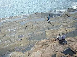 The island has a temple dedicated to Tin Hau, built in 1765,[11] and a temple dedicated to Tam Kung: the Tam Tai Sin Temple (譚大仙廟), built before 1877.[10] Both temples are located in the village of Sha Tau. Several other old buildings can be found on the island. On one side of the island there are steep cliffs, below which is an amazing wave-cut platform, with jagged rocks, set at a 30-degree angle, like a staircase. Here there are many rock pools containing all manner of marine life, such as sea urchins and crabs. On the island's coastline at the pier side, there are over 60 different species of coral, and 35 species of algae.