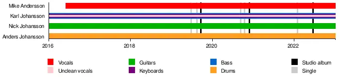 Anders founded the band in 2016, together with his son Nick and Karl Johansson.[1] The idea for creating a band together arose, after Anders listened to metal music that his sons created, which he enjoyed, eventually leading into the bands formation.[2][3] Tungsten was later joined by Swedish vocalist Mike Andersson, following which the recording of their first album started.[4]