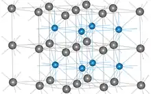 There are two forms of WC, a hexagonal form, α-WC (hP2, space group P6m2, No. 187),[5][6] and a cubic high-temperature form, β-WC, which has the rock salt structure.[22] The hexagonal form can be visualized as made up of a simple hexagonal lattice of metal atoms of layers lying directly over one another (i.e. not close packed), with carbon atoms filling half the interstices giving both tungsten and carbon a regular trigonal prismatic, 6 coordination.[6] From the unit cell dimensions[23] the following bond lengths can be determined: the distance between the tungsten atoms in a hexagonally packed layer is 291 pm, the shortest distance between tungsten atoms in adjoining layers is 284 pm, and the tungsten carbon bond length is 220 pm. The tungsten-carbon bond length is therefore comparable to the single bond in W(CH