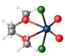WO2Cl2 is a Lewis acid, forming soluble adducts of the type WO2Cl2L2, where L is a donor ligand such as bipyridine and dimethoxyethane. Such complexes often cannot be prepared by depolymerization of the inorganic solid, but are generated in situ from WOCl4.[6]