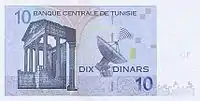 10 dinars | Blue | Elissa (Dido) Instituted after the United Nations IT conference in Tunis 2006. | Sbeitla temple, satellite dish |