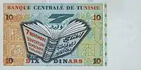 10 dinars | Blue | Ibn Khaldoun | Motif commemorating the overthrow of Habib Bourguiba on 7 November 1987 |
