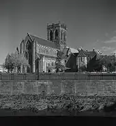 At Paisley Abbey in Scotland, few of the original monastic buildings survived into the 20th century, so landscaping of the area around the church in 1990 provided an ideal opportunity to investigate the positions of those now "lost" channels. The main drain, which would have brought fresh water into the complex and taken away the effluents, would have acted as the spinal column of the buildings. Local knowledge led to the rediscovery of a substantial medieval drain with fine stonework and enough space for a person to walk through.[57]