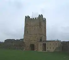The tunnel appears to have been well known, though the cave remains hidden. A second story tells how this subterranean passage is supposed to run from the Castle to nearby Easby Abbey. Some soldiers once sent a drummer-boy along it to test the theory and followed the sound of his drum almost halfway to the Abbey. Then the drumming stopped and the boy was never seen alive again, but his ghost is said to haunt the tunnel, from where a slow drumbeat is still sometimes heard. A memorial stone marks the spot at which the drum beat was last heard. It is believed that the legendary tunnel was constructed in medieval times as an escape route to the castle for the abbot and canons of the abbey in case of an attack from the Scots, who were continually making raids into the northern counties of England.[13]