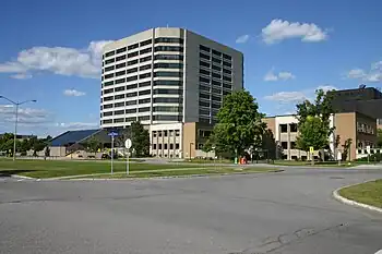 Tunney's Pasture is a 49-hectare (121-acre) campus in the Canadian capital of Ottawa, Ontario, that is exclusively developed for federal government buildings. It is bordered by Scott Street to the south, Parkdale Avenue to the east, the Sir John A. Macdonald Parkway to the north, and the Champlain Park neighbourhood to the west. While strictly speaking it is confined to this area, people living in the vicinity of it will often call the wider neighbourhood Tunney's Pasture.