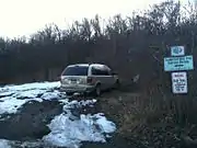 Hazards of the trail during warmer weather include snakes, biting insects, and deer ticks, which are known to carry Lyme disease.[9]