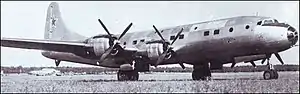 The Tupolev Tu-70 (Russian: Туполев Ту-70; NATO reporting name: Cart) was a Soviet passenger variant of the Tu-4 bomber, an unlicensed, reverse engineered copy of the Boeing B-29 Superfortress.[1] Designed immediately after the end of World War II, it used a number of components from Boeing B-29s that had made emergency landings in the Soviet Union after bombing Japan.[2] It had the first pressurized fuselage in the Soviet Union and first flew on 27 November 1946.[3] The aircraft was successfully tested, recommended for serial production, but ultimately not produced because of more pressing military orders and because Aeroflot had no requirement for such an aircraft. A military cargo aircraft version was the Tupolev Tu-75.