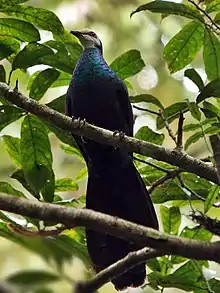 The white-faced cuckoo-dove (Turacoena manadensis), also known as the white-faced dove, is a species of bird in the family Columbidae. It is endemic to Sulawesi and the Togian Islands in Indonesia. The Sula cuckoo-dove was previously considered conspecific.