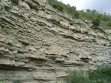 Turbidites were first properly described by Arnold H. Bouma (1962),[1] who studied deepwater sediments and recognized particular "fining-up intervals" within deep water, fine-grained shales, which were anomalous because they started at pebble conglomerates and terminated in shales. This was anomalous because within the deep ocean it had historically been assumed that there was no mechanism by which tractional flow could carry and deposit coarse-grained sediments into the abyssal depths.