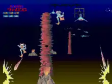 Turbo Sub is a first-person shoot 'em up released in arcades by Entertainment Sciences in 1985.[3] Aliens have attacked the planet and the player fights them beneath the ocean using a submersible ship.[4] Six years after the arcade original, Atari Corporation published a Lynx version, which adds a two-player mode.