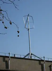 The Turby is a brand of vertical-axis Darrieus wind turbine. The three vertical aerofoil blades have a helical twist of 60 degrees, similar to Gorlov's water turbines.[1][2][3][4][5]