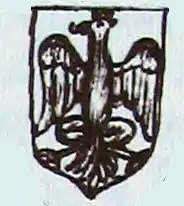 Composed of a silver shield with a black eagle, with a golden crown. The motto reads "la virtù può accompagnarsi alla buona fortuna" (Virtue will bring good fortune).