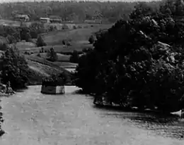 Tureholm is a small and uninhabited artificial river island in Bäveån, which runs through the city of Uddevalla in Bohuslän, Sweden. It was created in the late 19th century or early 20th century by the local politician and publicist Ture Malmgren (1851–1922), close to his residence Villa Elfkullen.[1][2] According to his newspaper Bohusläningen (writing many years after he died), the process of land reclamation took place because Malmgren enjoyed water, and wanted to be closer to the river.[3] According to another author (who also notes that Malmgren would angle fish from Tureholm, where his "grandiose thoughts had free play"), it partially functioned as a wave breaker, preventing the ice of the late winters from pulling the nearby bridge with it.[4] A small bridge is said to have formerly led from the mainland to its now overgrown embankments.[3] The islet was named in reference to Malmgren by his friends.[5] Other places named for him include the ruined Tureborg Castle and the nature reserve Ture Valleys.