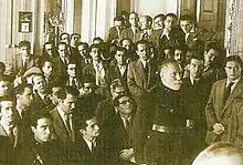 Turkism Day (Turkish: Türkçülük Günü) is celebrated on 3 May since 1945 in memory of the rallies in defense of Nihal Atsız,[1] who was prosecuted for defamation by Sabahattin Ali, whom Atsiz called a Soviet spy in an article he wrote.[2] For the second hearing in his trial against Ali, Atsiz's supporters welcomed him arriving at Ankara train station, where they burned books by Ali and Nâzım Hikmet.[3] The rally was mainly by racists and Turanists who shouted slogans against communists.[2][4] During the trial, they massed in the courtroom, as well in front of the court.[3] They later marched to Ulus Square where they eventually clashed with the police.[3] Following the rally, many participants were arrested and some of them were defendants in the Racism Turanism trial.[5] Reha Oğuz Türkkan, Atsız, Alparslan Türkeş, Nejdet Sançar and others, who were imprisoned in the Tophane Military prison, held a reunion on 3 May 1945 to remember the rallies in support of Atsız. This was the start of a 'Turkism Day' celebration;[6][5] Turkism day is celebrated by the Turkish Hearths,[7] the Nationalist Movement Party (MHP) (under the name of Nationalists' Day),[8] the Good Party (İyi Party),[9] also some politicians of the Justice and Development Party (AKP)[10] and other Turkish nationalist organizations. In 1967 the Union of Turkish Nationalists published a book in memory of Turkism day.[11]