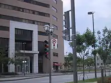 Right turns on red are permitted in many regions of North America. In the United States, western states have allowed it for more than 50 years, and eastern states amended their traffic laws to allow it in the 1970s as a claimed fuel-saving measure in response to motor fuel shortages in 1973. The Energy Policy and Conservation Act of 1975 required in §362(c)(5) that in order for a state to receive federal assistance in developing mandated conservation programs, they must permit right turns on red lights.[7] All 50 states, the District of Columbia, Guam, and Puerto Rico have allowed right turns on red since 1980, except where prohibited by a sign or where right turns are controlled by dedicated traffic lights. (The last state with a right-on-red ban, Massachusetts, ended its ban on January 1, 1980,[8][9] but about 90% of the traffic signals in the state were outfitted with "no turn on red" signs in preparation for the change.[10]) The few exceptions include New York City,[11] where right turns on red are prohibited unless a sign indicates otherwise, and in Washington, DC, which will prohibit right turns on red in 2025.[12][13]