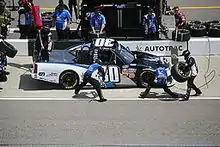This team began as the No. 10 Nesquik Chevrolet for ppc Racing back in the year 2000. It was purchased by Braun Racing after the closing of ppc in 2007.[19][20] Even after being bought by Braun, the car continued as the No. 10, often competing part-time. Braun Racing had also run a No. 30 car in the past, winning at Rockingham Speedway in 2004 with Jamie McMurray.[21]