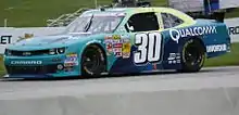 In 2011, the team ran full-time as the No. 30 Chevrolet Impala with a multitude of drivers.[11] Leffler drove the No. 30 with Accudoc Solutions, Wolfpack Rentals and Great Clips sponsoring the eight races that Kasey Kahne ran Leffler's normal No. 38. James Buescher drove in nine races with ABF Freight System, Fraternal Order of Eagles, Accudoc Solutions, Sporting Kansas City and Exide Batteries sponsoring the car. Ricky Carmichael drove the car with Monster Energy at Road America, Daytona, and Richmond. Ryan Newman drove the No. 30 with Dollar General on board at Phoenix. Reed Sorenson drove the No. 30 at Las Vegas, California, Michigan, and Kentucky with little success. Mikey Kile drove the No. 30 for five races with Accudoc and Battery Tender serving as sponsors. In addition to his driving duties in the No. 38 Turner Scott Motorsports car, Kahne drove the No. 30 entry at Charlotte in the spring and Chicagoland in the fall. Boris Said drove at Circuit Gilles Villeneuve with Great Clips sponsorship. Nelson Piquet Jr. drove the car at Homestead-Miami Speedway. Eddie Pardue stayed with Leffler when he transitioned between the No. 30 and No. 38, while Stewart Cooper worked with Kahne and the other drivers. The car ended up 18th in owner points with two top fives and 10 top 10s. The car's best run was at Lucas Oil Raceway when Buescher finished 2nd.