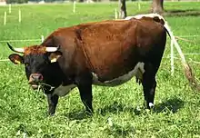The Tux-Zillertal, German: Tux-Zillertaler, is an endangered Austrian breed of domestic cattle. It was created in 1982 when two similar Alpine breeds, the Tux and the Zillertal, were merged.[2]: 317 [1] The two names derive from those of the municipality of Tux in the Tuxertal, and of the neighbouring Zillertal, both in the Tirol region of Austria. The Tux-Zillertal may derive from the Swiss Hérens breed. Like the Hérens, it was long selected for the fighting ability of the cows, at the expense of productive characteristics.[3]: 116